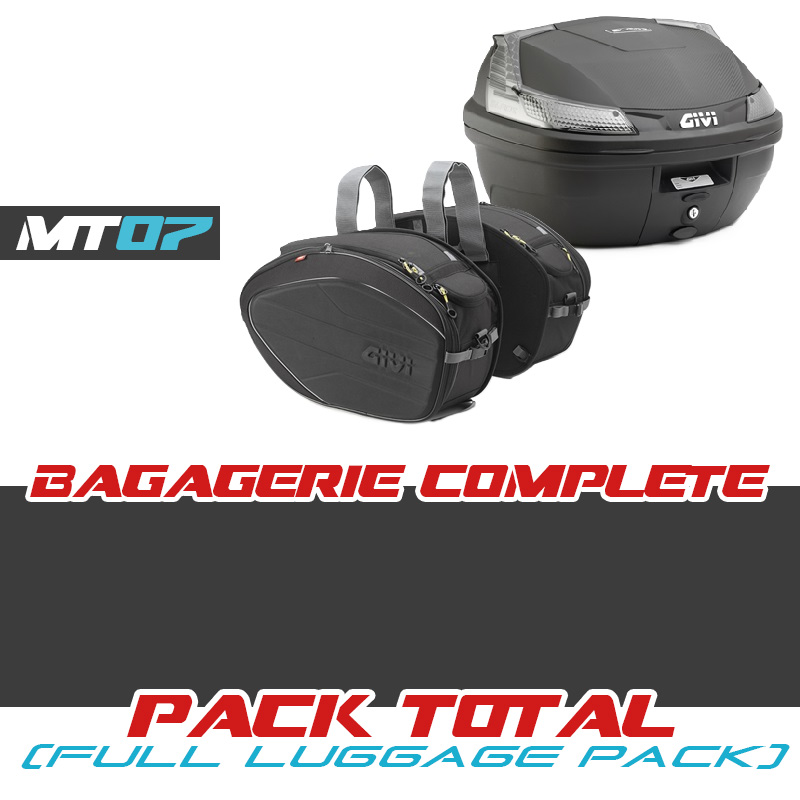 Pack completo Givi para instalar un top case B37 Blade Tech Monolock® y un set de alforjas extensibles en tu Yamaha MT-07 de 2018 a 2024.